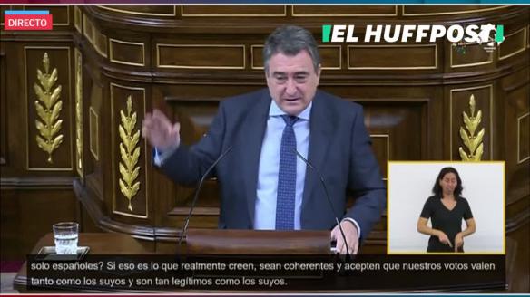 El portavoz del PNV ha aprovechado su intervención en la tribuna para cargar contra el Partido Popular -los populares llevan tiempo centrando sus ataques sobre el que es un rival político natural para ellos en Euskadi, incluso Feijóo ha asegurado que tratarán de ocupar su espacio en las próximas autonómicas-, a raíz de la serie de protestas y manifestaciones que han llevado a la calle y plazas. "Protestas con consignas no democráticas, manifestaciones ante sedes de partidos con saludos fascistas… Esto es lo más antieuropeo que puede haber. Y el PP sin condenar y rechazando a medias esas concentraciones. ¿Qué es eso de querer imponer en las calles lo que no se ha ganado en las urnas?", ha espetado a la bancada popular.