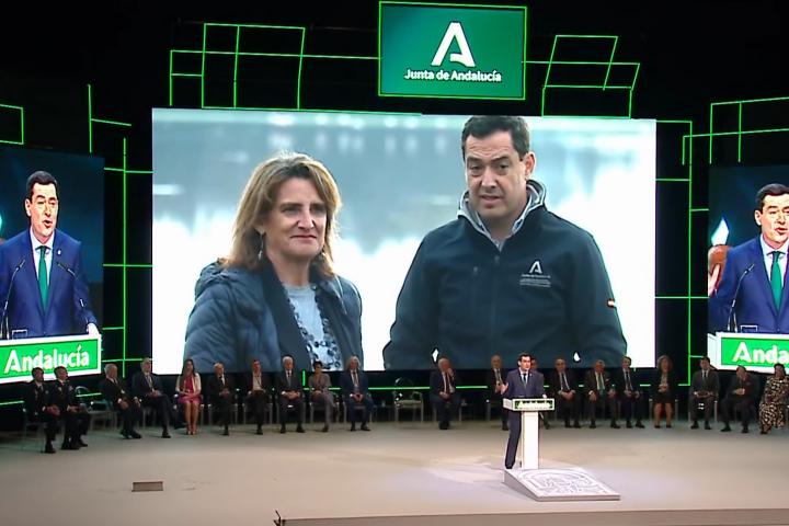Moreno reivindica su pacto con Teresa Ribera en Doñana durante el 28-F