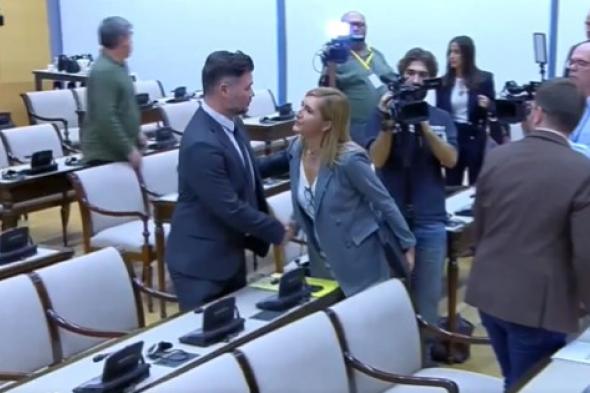En su entrada a la comisión, Pradas ha querido saludar y dar dos besos a la mayoría de parlamentarios presentes. Entre ellos, el diputado de ERC, Gabriel Rufián. La exconsellera se ha acercado a él y le ha tendido la mano, para después darle dos besos. Pero el dirigente independentista echa hacia atrás la cabeza, un gesto claro de negación de ese beso. Pradas se ha limitado entonces a apartar su mano y a encaminarse hacia los otros vocales para repetir el mismo saludo.