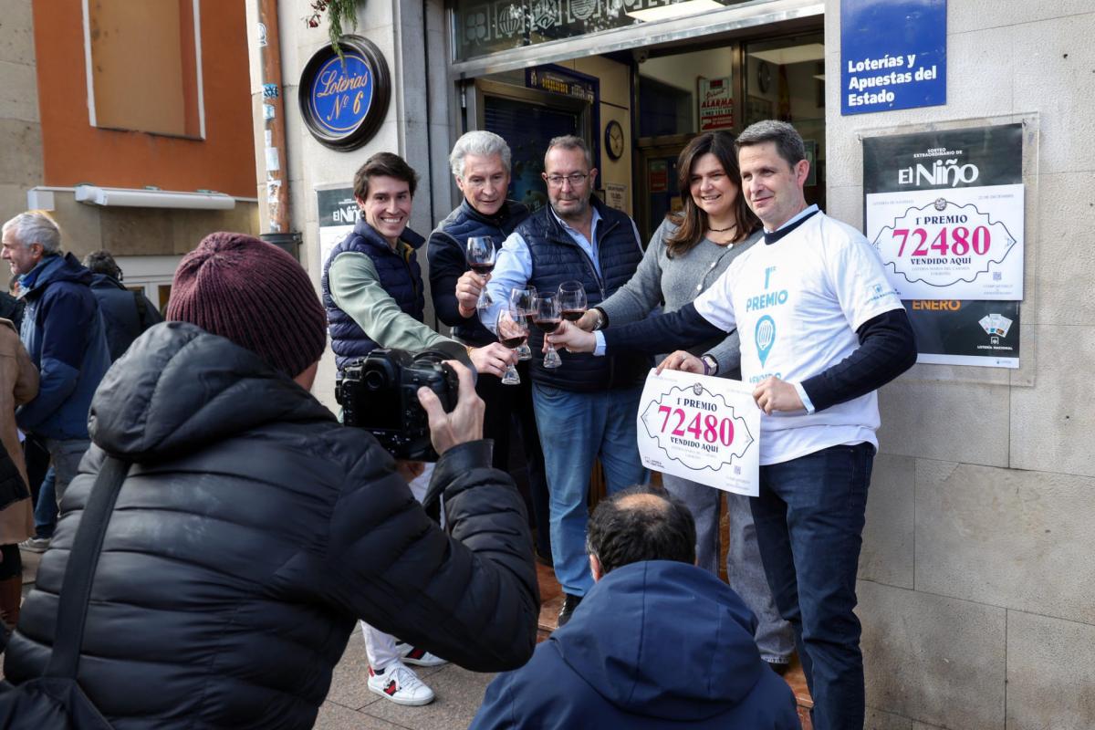 "¡El Gordo ha tocado en Logroño!". Esta ha sido la frase que más se ha escuchado ese domingo en España, pero, sobre todo, en los alrededores de la administración de lotería número 6 de la capital riojana, donde, desbordada de alegría, se ha brindado con vino de Rioja al saber que el 72.480 se había consignado íntegramente en este establecimiento.