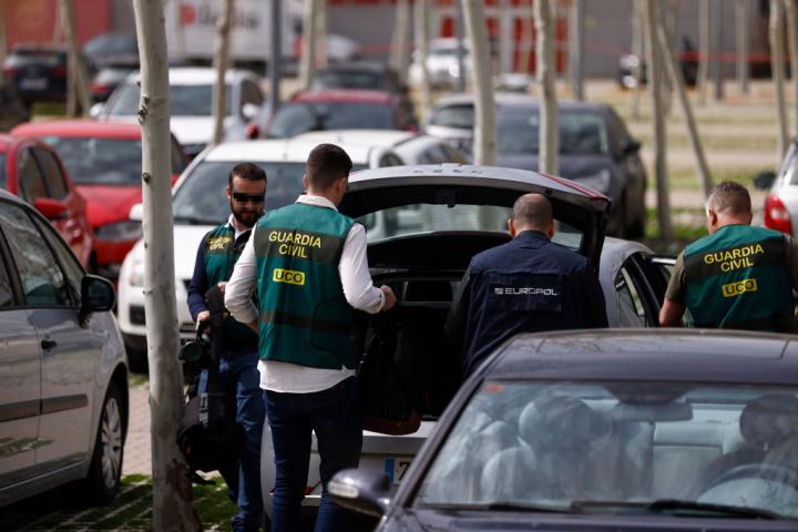Agentes de la Unidad Central Operativa (UCO) de la Guardia Civil están practicando los registros dentro de una pieza separada abierta por el juez Juan Carlos Peinado en la causa en la que investiga a Gómez por presuntos delitos de tráfico de influencias y corrupción en los negocios.
