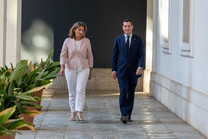 El presidente de la Junta de Andalucía, Juanma Moreno, y la vicepresidenta tercera y ministra de Transición Ecológica y Reto Demográfico, Teresa Ribera, van a rubricar y a presentar este lunes en Almonte (Huelva) el acuerdo que han alcanzado ambas administraciones sobre medidas para el Parque de Doñana y su entorno, cuya convocatoria pública se hace bajo el título de Acuerdo por Doñana.