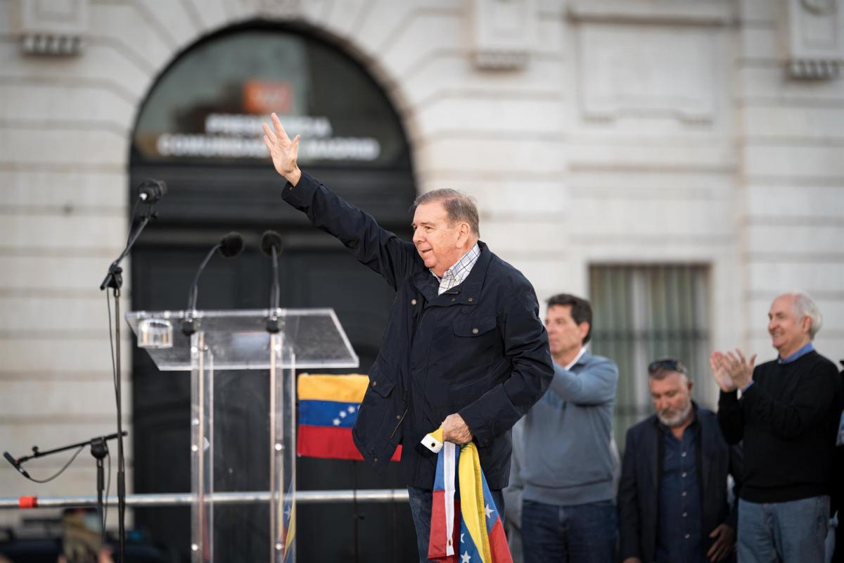 Edmundo González asiste a la movilización en su primer acto público como exiliado en España.