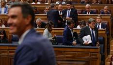 "Usted me pedía seis debates en la campaña electoral y ahora no es capaz de hacer el segundo", ha dicho Feijóo al presidente del gobierno en funciones entre los aplausos y risas de la bancada del PP. Acto seguido, la mayoría de diputados de la derecha se ha levantado y ha comenzado a gritar casi al unísono "¡cobarde!" a Sánchez. Una situación que ha obligado a la presidenta del Congreso, Francina Armengol, a interrumpir la sesión.