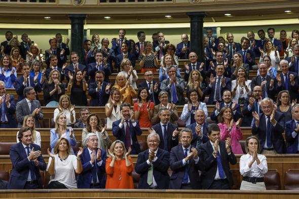"Usted me pedía seis debates en la campaña electoral y ahora no es capaz de hacer el segundo", ha dicho Feijóo al presidente del gobierno en funciones entre los aplausos y risas de la bancada del PP. Acto seguido, la mayoría de diputados de la derecha se ha levantado y ha comenzado a gritar casi al unísono "¡cobarde!" a Sánchez. Una situación que ha obligado a la presidenta del Congreso, Francina Armengol, a interrumpir la sesión.