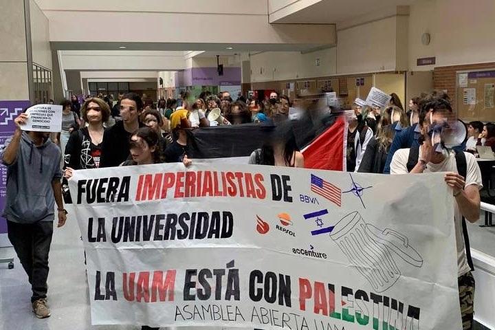 De esta forma la asamblea de estudiantes de la UAM se ha sumado al movimiento internacional universitario de apoyo al pueblo palestino para protestar contra el genocidio en Gaza, la complicidad del Gobierno español y los lazos de la universidad con empresas armamentísticas, han destacado en una nota los promotores de la acción.