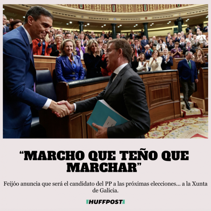 En una sorprendente decisión, el presidente del Partido Popular y líder de la oposición, Alberto Núñez Feijóo, ha anunciado esta mañana en el Congreso que será el candidato de los populares en la próxima cita electoral, las elecciones autonómicas a la Xunta de Galicia. Ante un hemiciclo totalmente impactado por el anuncio y en un movimiento que recuerda en gran medida a la salida del Gobierno del exvicepresidente Pablo Iglesias, Feijóo ha indicado que dará "un paso atrás para que Galicia siga avanzando" y ha reconocido que se trata de una cuestión que tan solo conocía su círculo más íntimo en Génova 13. En el que ha sido también su primer uso del gallego en las Cortes tras la reforma que permite usar lenguas cooficiales, ha finalizado señalando: "Mais nada e moitas grazas". Nada más trascender la noticia, la primera reacción ha llegado desde el PP de Madrid, a través de su presidenta, Isabel Díaz Ayuso, quien ha deseado toda la suerte a Feijóo y a la "mujer" que tome las riendas del PP nacional.