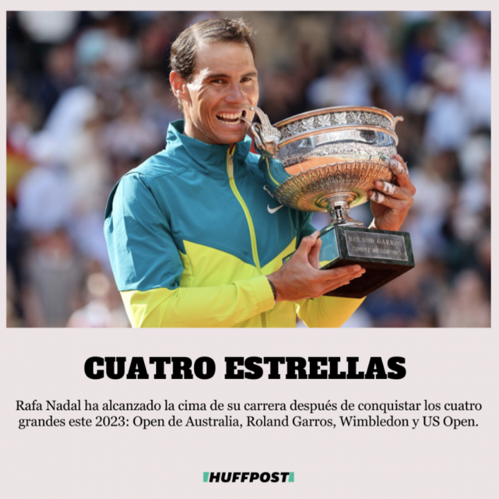 El tenista español ha alcanzado la cima de su carrera después de conquistar el Open de Australia, Roland Garros, Wimbledon y el US Open este 2023. Se convierte así en el sexto tenista de la Historia en conseguir esta increíble hazaña, tras Don Budge (1938), Rod Laver (1962 y 1969), Maureen Connolly (1953), Margaret Smith Court (1970) y Steffi Graf (1988).
