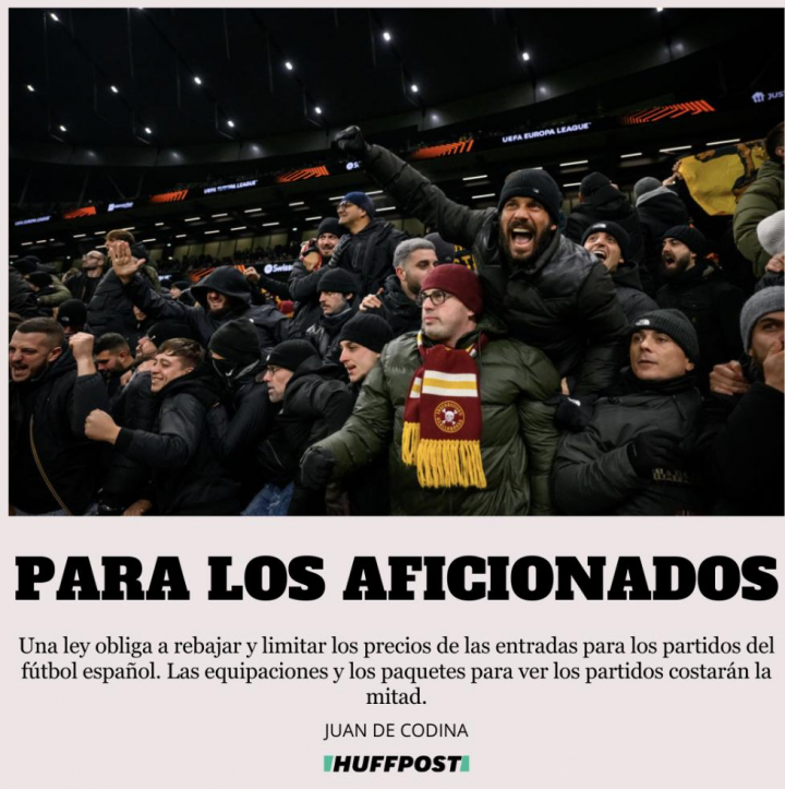 Una ley obliga a todos los equipos españoles de fútbol a rebajar y limitar los precios de las entradas para los partidos de fútbol de cualquier competición. A partir de ahora las equipaciones de las tiendas oficiales tendrán un precio no superior a 30 euros. Contratar el fútbol para disfrutarlo en televisión no costará más de 20 euros al mes. De esta forma, muchos aficionados podrán disfrutar, por fin, del fútbol.