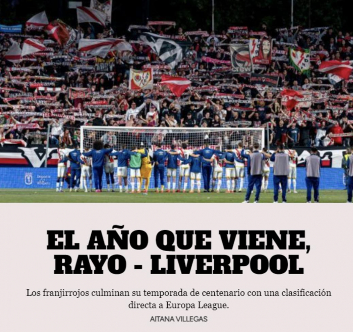 La realidad: Como cada temporada, ha resonado en el Estadio de Vallecas esa oda a la ilusión que es para la afición franjirroja "el año que viene, Rayo - Liverpool". Sin embargo, continúa siendo un sueño en los 100 años de historia que ha cumplido el club este 2024. Aupado por su afición hasta el final, el conjunto franjirrojo culminó la temporada 2023/2024 en una 17ª posición con la que lograron continuar en Primera este próximo 2025. Por Aitana Villegas.