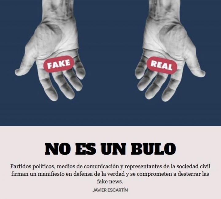 Todas las formaciones políticas con representación en los diferentes parlamentos y consistorios, los medios de comunicación y representantes de la sociedad civil consideran necesario que tanto la prensa como las redes sociales sean espacios libres de bulos e intoxicaciones que no tienen otro fin que la manipulación, la relevancia particular o, incluso, el rédito económico. Por eso, han firmado de forma conjunta un manifiesto en el que todas las partes se comprometen a poner fin a esta práctica que atenta contra la democracia y la propia libertad de prensa.