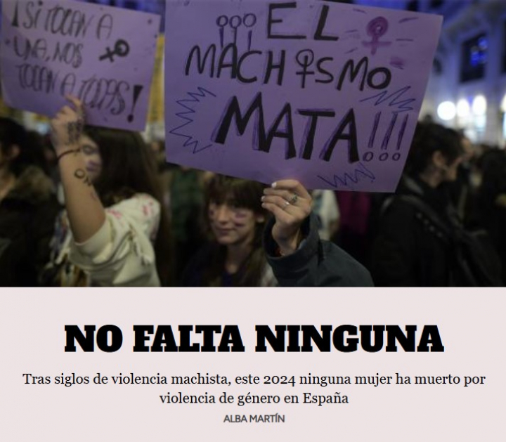 Ninguna víctima mortal. Tras siglos de violencia machista, por primera vez en la historia, este 2024 ninguna mujer ha muerto por violencia de género en España. La clase política en su totalidad ha celebrado el fin de esta lacra y ha anunciado la creación de un comité de expertos que se encargará de analizar qué medidas han frenado los asesinatos con el objetivo de extinguir estructuralmente cualquier forma de violencia contra las mujeres.