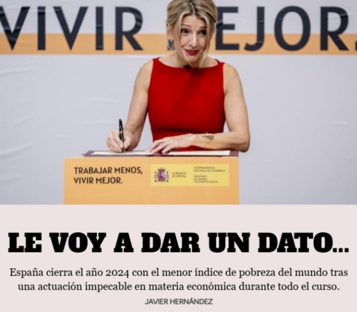 España se convierte en el país con el menor índice de pobreza del mundo tras superar a Finlandia, que hasta ahora se encontraba liderando esta estadística. Todo esto se consigue gracias a unas políticas eficaces con los más necesitados y que han conseguido reducir la tasa de pobreza por debajo del 10% en todo el país. Con estos datos, España se convierte en el mayor ejemplo del mundo en la materia y se convierte en la envidia del mundo a nivel global.