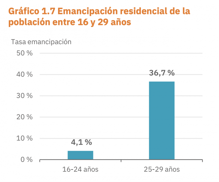 Comparando este dato con la tasa de emancipación en Europa, la situación es aún más sangrante. Según el Consejo de la Juventud, en España, entre los jóvenes entre 16 y 24 años es del 4,10% y en Europa, del 17,7%. En el siguiente tramo, entre 25 y 29 años, la tasa en España es del 36,7% y en Europa es del 57,9%.