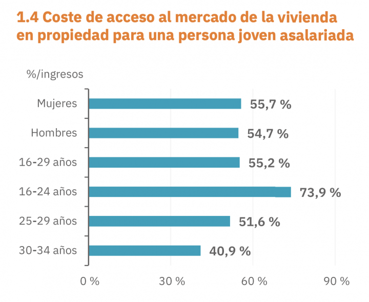 Porque la situación es tan dramática para los jóvenes como este dato que también recoge el Consejo de la Juventud: un joven que quiera vivir solo, tiene que dedicar el 85% de su salario para acceder a un alquiler.