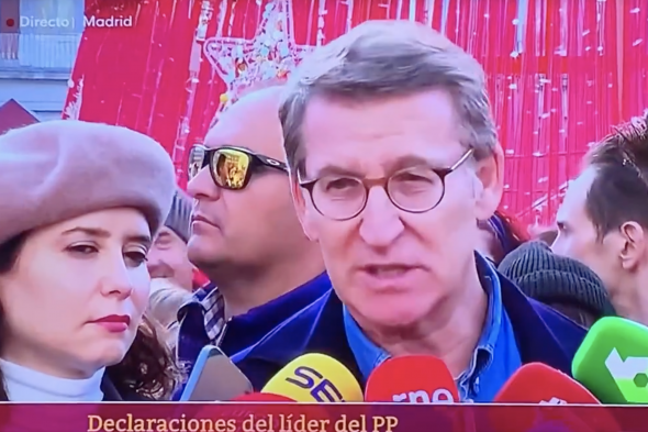 En la céntrica Plaza Mayor de la capital, ambos dirigentes se detuvieron para atender a los periodistas, en lo que comúnmente se conoce como un 'canutazo'. Ante los reporteros, Feijóo abordó distintos temas de la actualidad política tanto nacional como internacional. Criticó a Sánchez por su postura en la guerra entre Israel y Hamás en Gaza; habló de la amnistía; y aseguró que esta semana anunciaría la renovación de la dirección del PP.