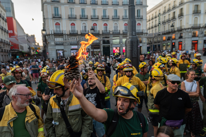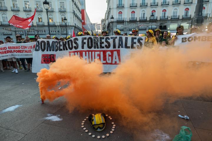 Tras una breve interrupción de 10 días motivada por la grave ola de incendios que sufre todavía España, los bomberos forestales de la Comunidad de Madrid reanudaron este lunes de forma "indefinida" la huelga que iniciaron el pasado 15 de julio para reclamar dignidad salarial, estabilidad laboral y reconocimiento profesional con un convenio actualizado, puesto que el vigente no se ha modificado desde 2008.