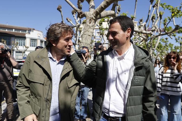 Los aspirantes del PNV y el PSE-EE a la Presidencia del Gobierno Vasco, Imanol Pradales y Eneko Andueza, ambos residentes en Portugalete, han hecho compras en un mercado de esta localidad vizcaína, donde se han saludado.