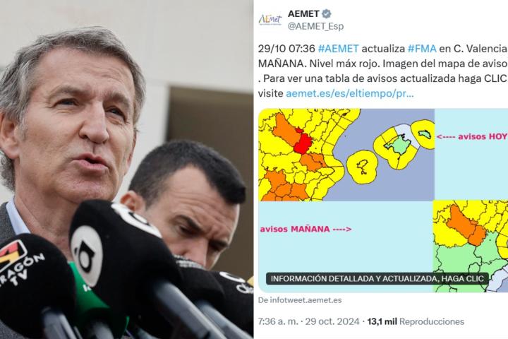 Los tuits de la AEMET que desmienten a Feijóo: decretó la alerta roja a las 07.36h. de la mañana