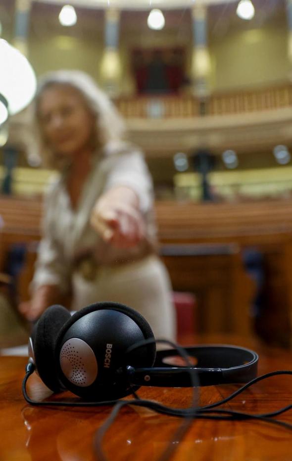 Sobre las mesas de los diputados ya estaban dispuestos desde primera hora los dispositivos de traducción simultánea: unas petacas alargadas con unos auriculares enganchados para que sus señorías no perdieran ripio de lo que se decía en el Hemiciclo.