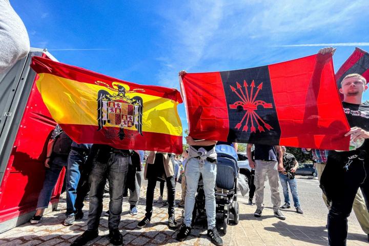 Tras su intervención, todos los presentes se pusieron a entonar el 'Cara al Sol' con el brazo en alto mientras permanecían rodeados de agentes. Una estampa más propia del blanco y negro que, sin embargo, ha vuelto a resucitar por unas horas muy cerca del corazón de Madrid.