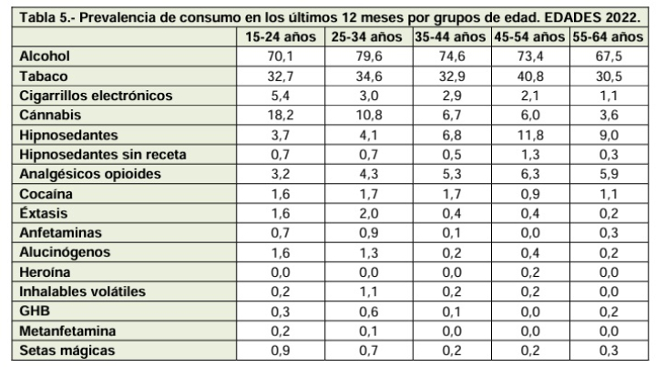 Según datos del sistema de vigilancia de adicciones de la Comunidad de Madrid, en 2022, el cannabis ha sido la droga ilegal más consumida entre los estudiantes de 14 a 18 años. El 27,8% lo ha hecho en alguna ocasión, el 21,8% en el último año y el 14,5% el último mes, siendo la edad media de su inicio es 14,8 años.