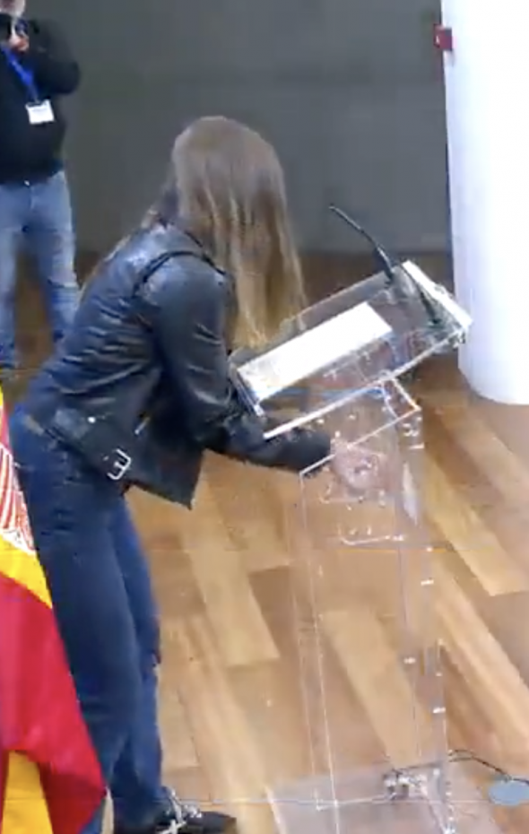 Mireia Vehí (CUP) trata de ajustarse el atril y sucede la tragedia: "Aaaaah, tenía que pasar"