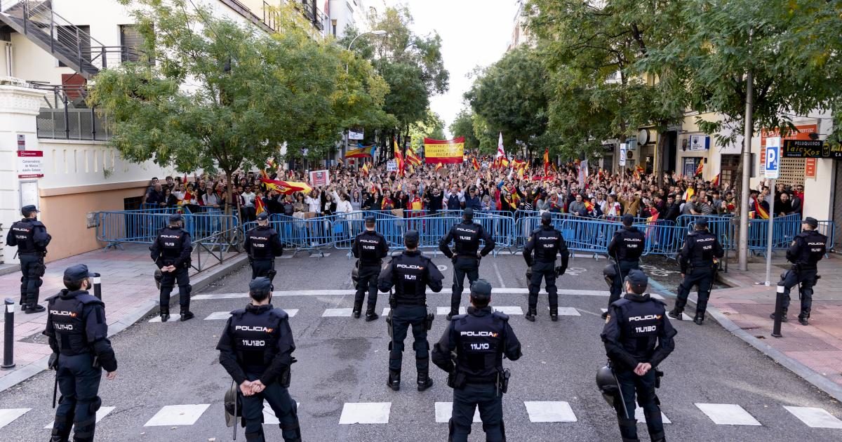 Unas horas antes de que arranque el debate de investidura de Pedro Sánchez, la concentración contra la amnistía convocada por decimosegundo día consecutivo en las inmediaciones de la sede nacional del PSOE en la madrileña calle de Ferraz ha congregado a unas 1.300 personas, según los datos de la Delegación del Gobierno. Una jornada marcada por la serie de proclamas y cánticos machistas proferidos contra el Gobierno en funciones y el PSOE en la que llegaron a sacar hasta muñecas hinchables.