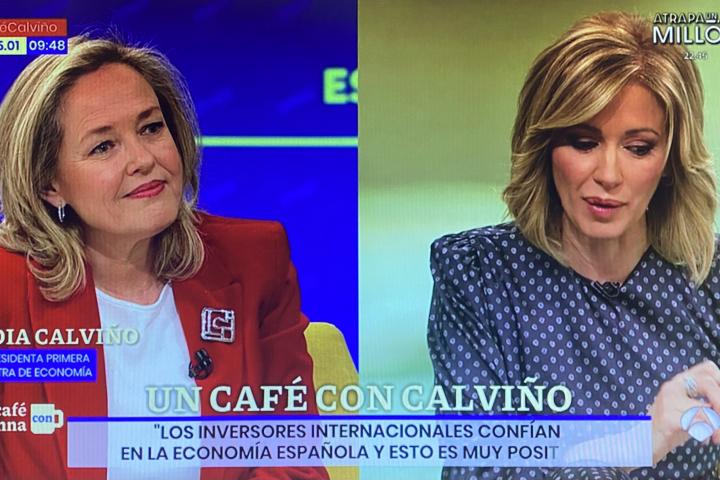 La vicepresidenta primera del Gobierno y ministra de Economía, Nadia Calviño (PSOE), ha estado este miércoles en Espejo Público (Antena 3), programa presentado por Susanna Griso, para hablar del estado de la economía en nuestro país. La entrevistadora se ha detenido un instante para tratar el tema de las inversiones aludiendo a la presidenta de la Comunidad de Madrid, Isabel Díaz Ayuso (PP), y Calviño ha rematado su opinión con una cortante frase dirigida a la mandataria popular.