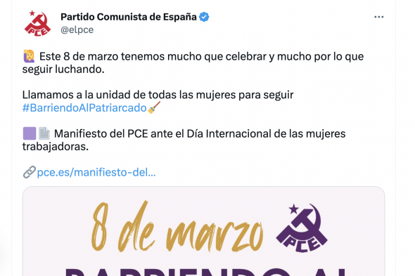 Alguien pensó que era buena idea y lo siguiente es ya historia. Concretamente, historia de una lluvia de críticas que le están cayendo al Partido Comunista de España, cuyo cartel por el 8 de marzo, Día de la Mujer, está provocando una notable irritación en las redes.