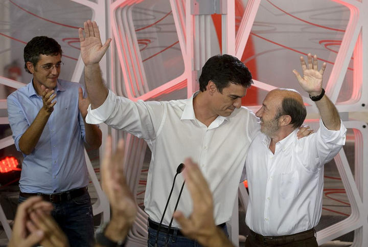 En las primarias celebradas en julio de ese año, Sánchez derrotó a los otros dos aspirantes: Eduardo Madina y José Antonio Pérez Tapias.