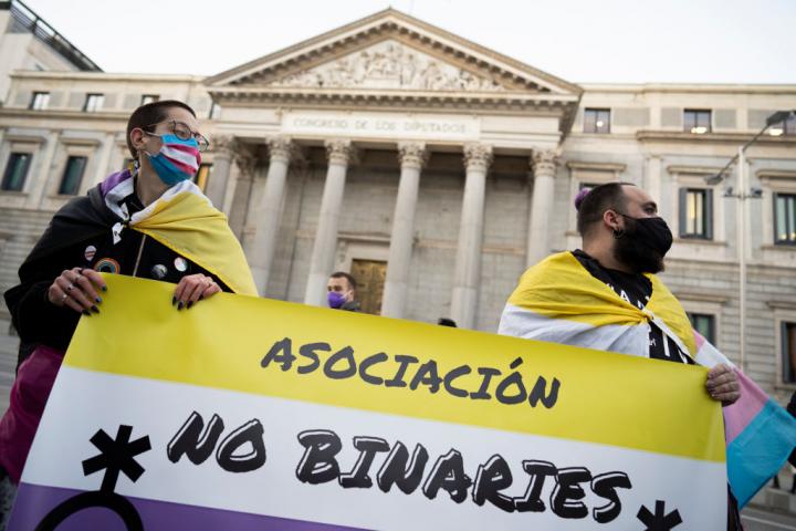 La aprobación definitiva este jueves de la ley trans, que permite el cambio de sexo en el registro sin necesidad de informes médicos ni tratamientos, deja fuera a las personas no binarias, que no sienten ni hombres ni mujeres y que reclamaban una tercera casilla en los documentos oficiales.