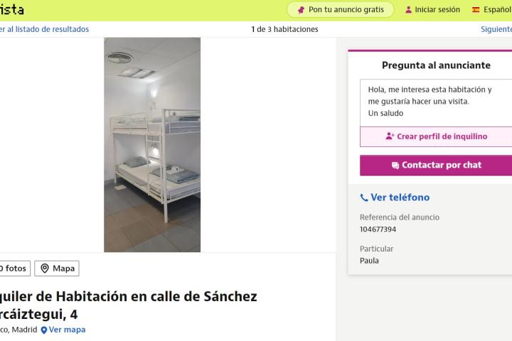 Piden en Idealista 300 euros al mes de alquiler por una litera en una habitación compartida en Madrid