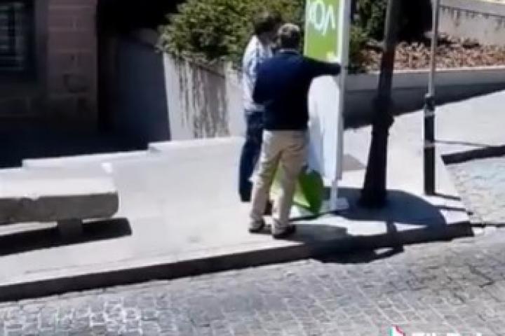 Pillan a dos simpatizantes de Vox colgando un cartel electoral... ¡del revés!