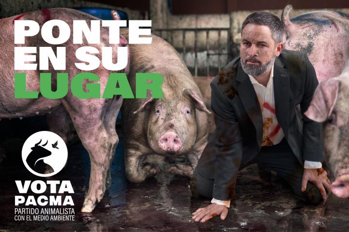 El partido animalista Pacma ha lanzado su campaña "Ponte en su lugar" con carteles electorales protagonizados por Pedro Sánchez, Santiago Abascal e Isabel Díaz Ayuso a modo de animales en situación de vulnerabilidad y siendo maltratados, y con un programa para este 23-J en el que incluye, además, políticas para la conciliación laboral o la prevención contra el suicidio.