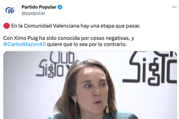 Este fragmento lo compartió la cuenta de Twitter del PP junto al mensaje "en la Comunidad Valencia hay una etapa que pasar".