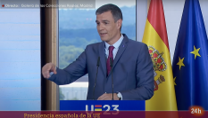 Lo ha hecho su presidente, Alberto Núñez Feijóo, con una imagen de fondo de La Moncloa y sin que se viera, para sorpresa de muchos, el logo del PP, sólo las banderas de España y de la Unión Europea.