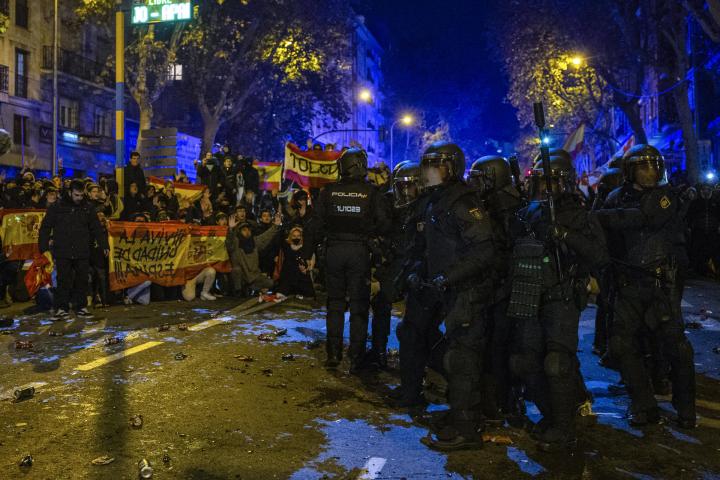 En la sede nacional del PSOE, en la calle Ferraz de Madrid, se produjeron disturbios que se han saldado con 7 detenidos y resultaron heridos de diversa consideración 30 policías nacionales después de que un grupo de manifestantes arrojara botellas, bengalas y otros objetos.