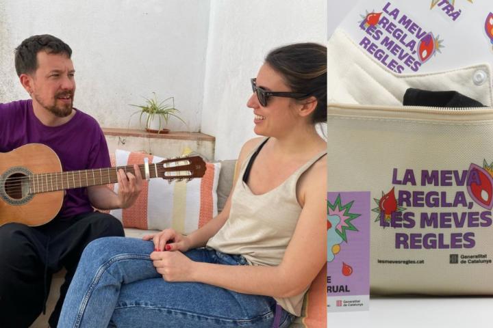 La 'mancha blanca' era en realidad la cremallera de un bolso que la pareja tenía sobre la mesa. Y no es un bolso cualquiera: se trata de un estuche que el Departamento de Igualdad y Feminismos de la Generalitat de Catalunya ha diseñado para facilitar a los jóvenes productos menstruales reutilizables. Bajo el lema "La meva regla, les meves regles" ("Mi regla, mis reglas", en español), la campaña busca garantizar el derecho a la equidad menstrual en Cataluña, promover la educación menstrual y facilitar el acceso a los productos menstruales reutilizables.