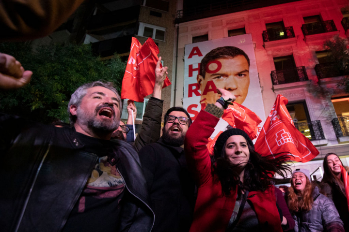 Mientras en Estados Unidos hubo que esperar hasta cinco días para proclamar ganador a Joe Biden en las últimas elecciones presidenciales, Sánchez salió en España al filo de la medianoche del mismo domingo electoral a la calle Ferraz de Madrid para celebrar con los simpatizantes del PSOE que su formación había vuelto a ganar unos comicios. En ese momento, habían pasado exactamente tres horas y cincuenta y ocho minutos desde que las urnas habían quedado cerradas (excepto en Canarias), y el escrutinio ya superaba el 90% de los votos. El resultado era prácticamente definitivo y, dos días después, Sánchez e Iglesias escenificaron el primer gobierno de coalición de España en democracia.
