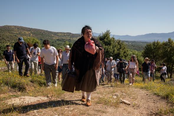 "¡Guarden esa bandera, guarden esa bandera! Estoy buscando a mi marido. Miren, esta es mi niña: Lucía. La está criando mi madre porque yo estoy aquí cerca de mi Esteban, que si no se muere. Quiero encontrarlo, pero no me dejan verle; me dicen que no está, pero yo sé que sí, que se fue al Tajo y está en la enfermería. Aquí, con el calor y las flores, ustedes piensan que esto es un parque temático, pero no es así; aquí hay dolor, piedra, memoria y olvido sobre olvido. He venido hoy a contarles el campo republicano como la bandera que les he pedido esconder, miren, cuando éramos felices". El llanto de Balbina del pasado jueves —una de las actrices que trabaja en la obra teatral Libertas— encogía el corazón de todos los presentes en el Destacamento penal filial de Garganta de los Montes, en Lozoyuela, situado en la sierra de Madrid.