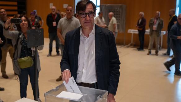 Salvador Illa vota en el Centro Cultural de La Roca del Vallès (Barcelona)