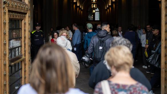 El colegio electoral de la sede central de la Universitat de Barcelona (UB) ha abierto este domingo tras colocar paneles opacos entre la acampada propalestina (que se mantiene en el claustro universitario desde el lunes) y las mesas de votación que acoge el edificio, para evitar cualquier interferencia con el proceso electoral.