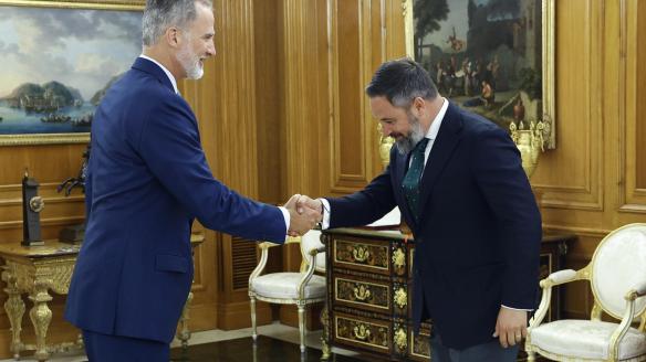 "Ante las amenazas tan grandes de la convivencia de los españoles, he trasladado al rey nuestro apoyo a Feijóo condicionado a que el PP no colabore de ninguna forma en el cordón sanitario que se pretende levantar contra Vox.
