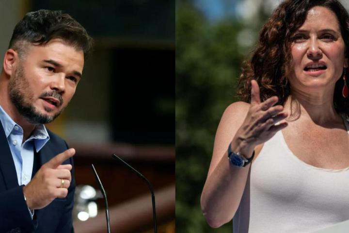 El portavoz en el Congreso de ERC le recuerda a la presidenta madrileña lo que hizo cuando no se habló en castellano y le propone hacer lo mismo con el deporte del motor.