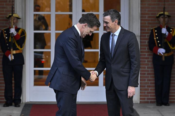 "España es un aliado fiel y desempeña un papel crucial en la OTAN, incluso mediante contribuciones a nuestras misiones y actividades. Celebro la reciente decisión de España de acelerar la inversión en defensa", manifestó Rutte en alusión a la decisión del Gobierno de Pedro Sánchez de avanzar a este año el 2 % del PIB previsto alcanzar en 2029.