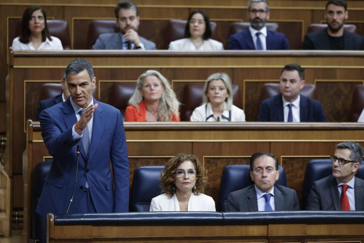 El presidente del Gobierno, Pedro Sánchez, ha defendido este miércoles que el PP "es una enciclopedia de corrupción" en su primera sesión de control al Ejecutivo después de conocerse el informe de la UCO que señala a su exsecretario de organización del PSOE, Santos Cerdán, como gestor de las mordidas obtenidas por la trama Koldo a cambio de conceder adjudicaciones de obra pública a empresas.