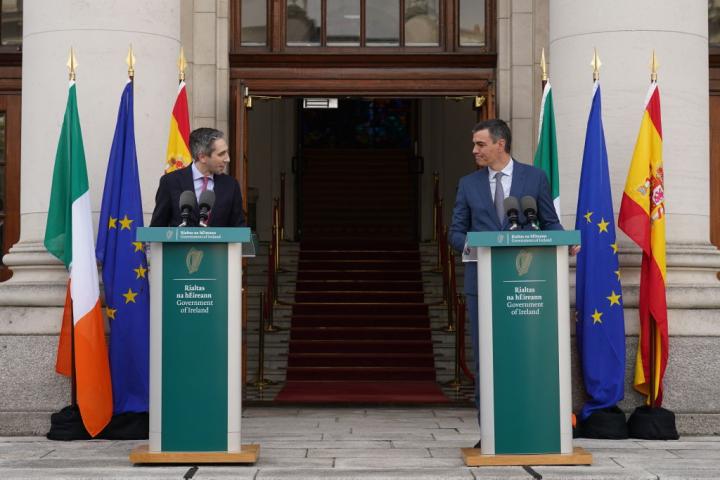 El presidente del Gobierno, Pedro Sánchez, y el primer ministro de Irlanda, Simon Harris, han resaltado este lunes la importancia de reconocer formalmente al Estado Palestino y se han mostrado de acuerdo en dar "en breve" el paso, sin entrar en posibles fechas.