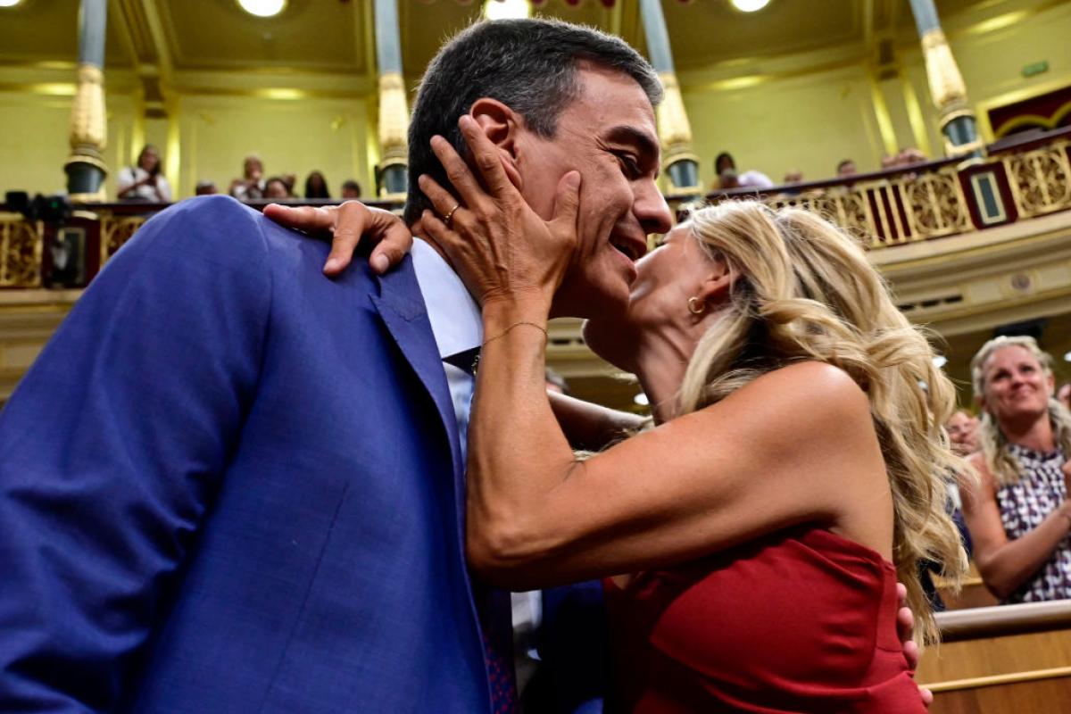 La otra imagen del arranque de la legislatura la han protagonizado Pedro Sánchez y Yolanda Díaz. La vicepresidenta segunda en funciones ha llegado al hemiciclo bajo el aplauso de los 30 diputados de Sumar. Segundos después, ha hecho su entrada el presidente del gobierno en funciones. En ese momento, Yolanda no ha dudado en abrazar y besar efusivamente al líder socialista y se ha sentado a su lado, aprovechando que la vicepresidenta primera, Nadia Calviño, se ha ausentado de esta sesión constitutiva.