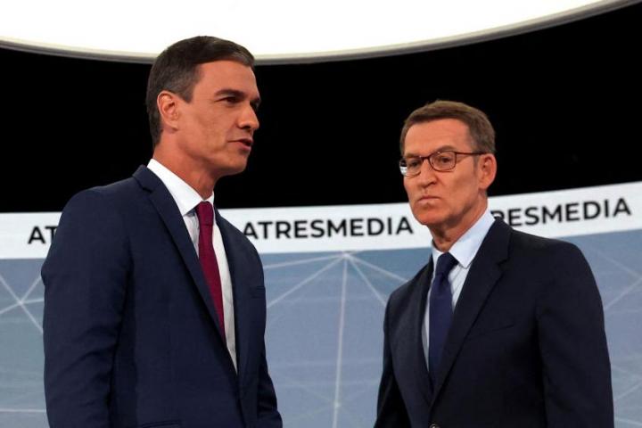 Un debate bronco, sin apenas propuestas, lleno de reproches de sobra conocidos entre Pedro Sánchez, presidente del Gobierno y líder del PSOE, y Alberto Núñez Feijóo, presidente y candidato del PP. Un debate ruidoso, agrio, plagado de interrupciones y en el que los moderadores se vieron sobrepasados por el excesivo ímpetu de ambos contendientes.